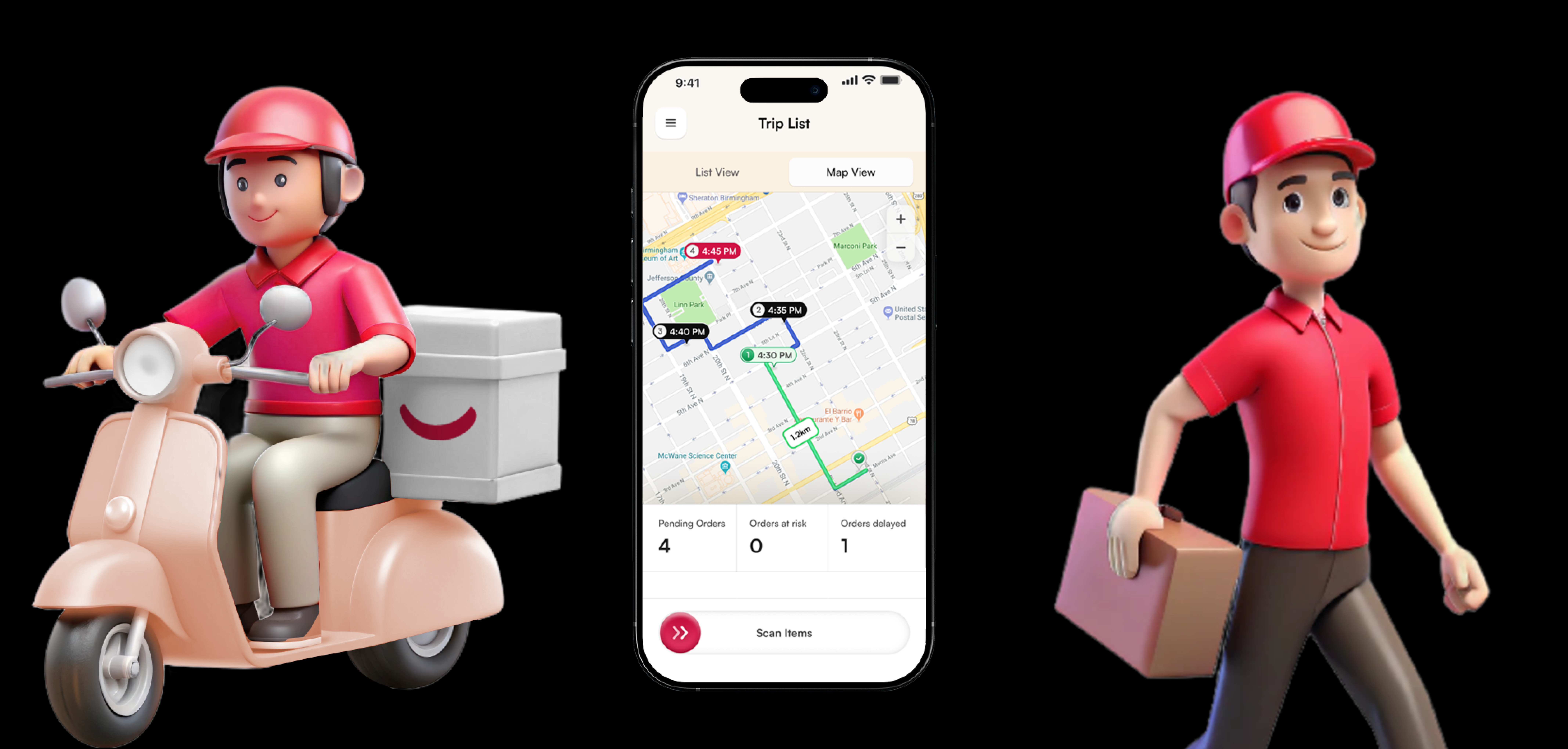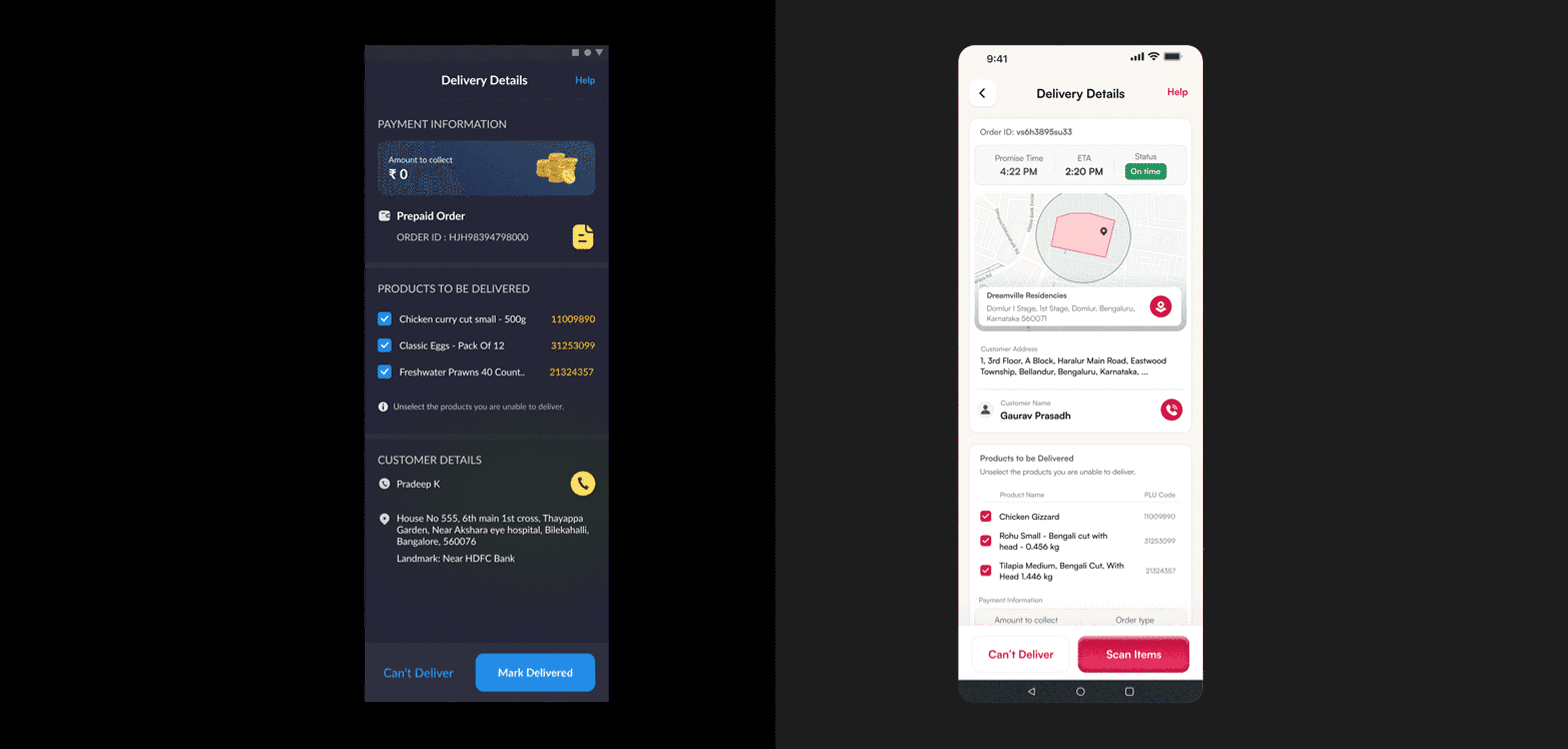 • Action buttons—“Can’t Deliver” and “Scan Items”—are given weight and space, making them easy to access under pressure.