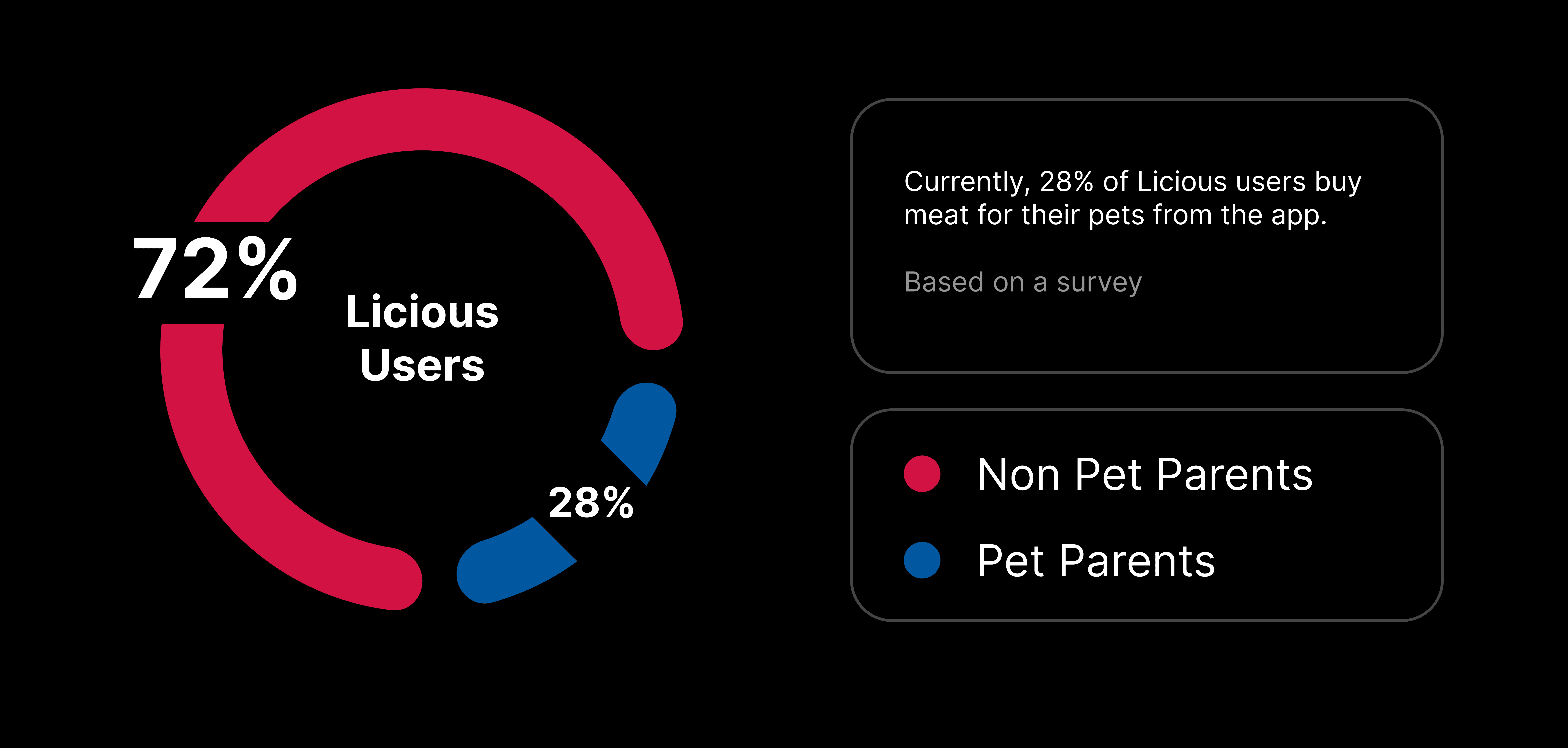 Understanding that Licious already had a high level of trust with its users—we saw an opportunity. Data from our internal surveys showed that while only a small percentage of existing Licious customers bought pet meat, a significant portion said they would if a reliable pet-food experience existed.